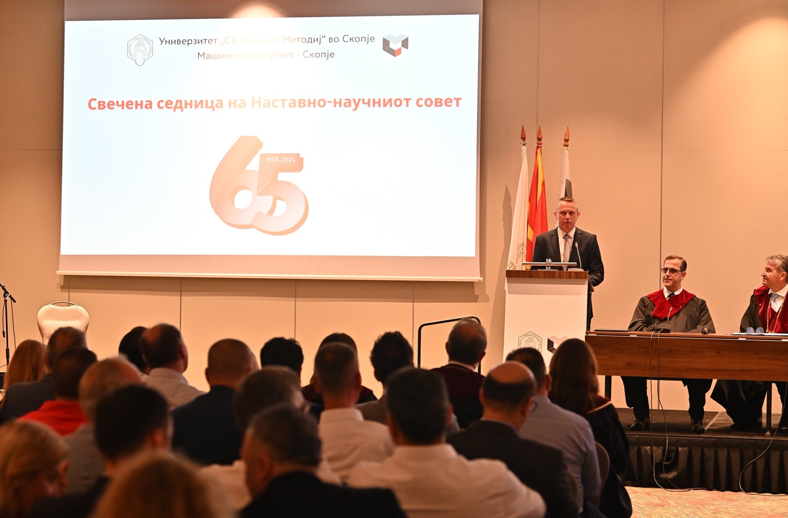Машинскиот факултет при Универзитетот „Св. Кирил и Методиј“ го прослави 65-годишниот јубилеј со свечен Научно наставен совет. Деканот на Машински факултет д-р Златко Петрески го отвори настанот, на кој беше присутен Трајан Ангелоски претседател на Сојуз на стопански комори на Македонија, заедно со Ректорката на Универзитетот „Св. Кирил и Методиј“, проректорите, професорите на Машинскиот факултет и останатите вработени на факултетот, како и партнери од индустријата кои заедно го одбележаа овој јубилеј размислувајќи за децениската академска извонредност и придонес во научната област во Република Северна Македонија.