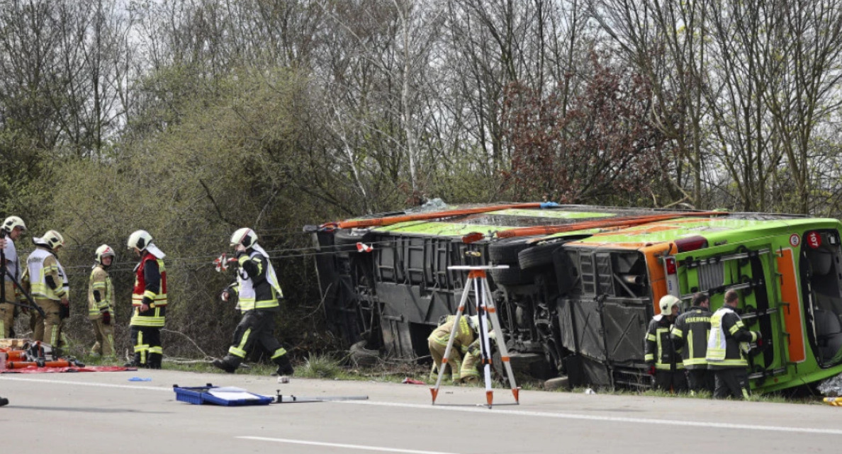 Автобус се преврте на автопатот А9 во близина на германскиот град Лајпциг, при што загинаа најмалку пет лица, а други патници тешко беа повредени.