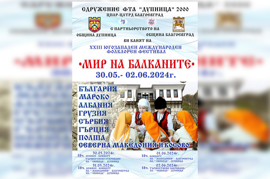 Благоевград ќе биде домаќин на Југозападниот меѓународен фолклорен фестивал „Мир на Балканот“