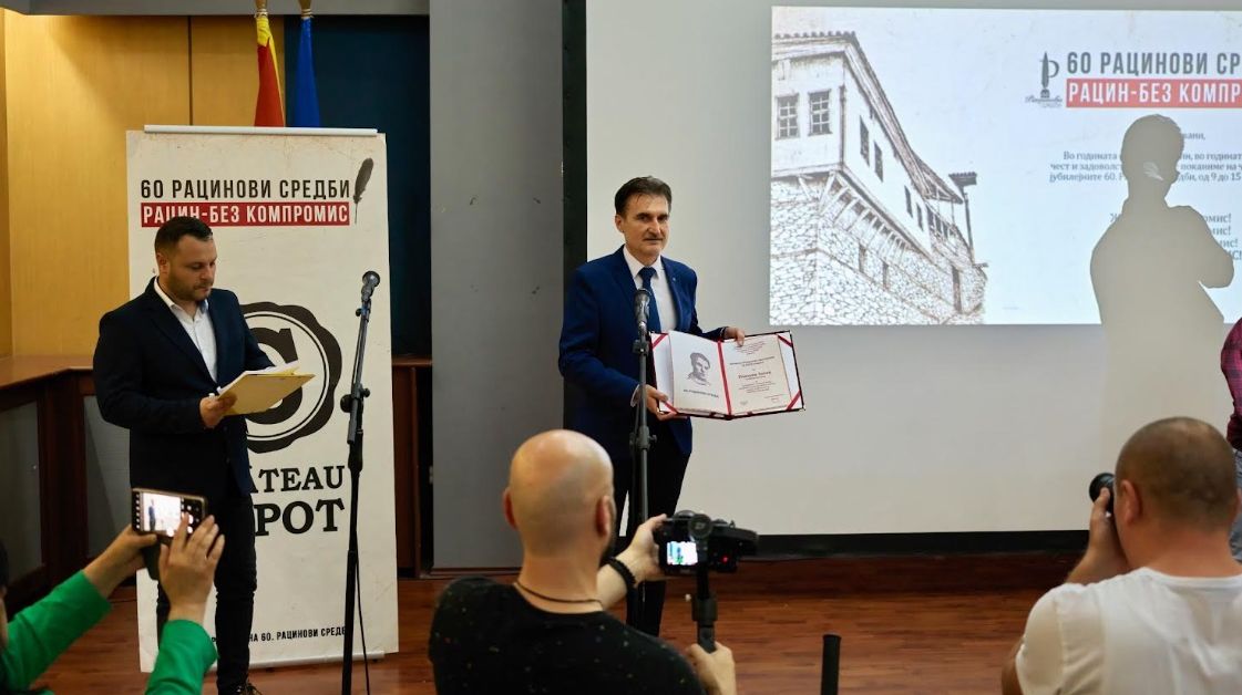 Годинава по 60-ти пат беше доделено „Рациново признание“. Наградата традиционално се доделува за најдобар македонски роман или збирка раскази. Годинава големата награда ја освои Блаже Миневски со романот за љубовта на Гоце Делчев и Јанка Каневче „Ако се родат чувства“. Писателот во Бугарија е познат по трите негови книги: „Мемоарите на глуварчето“, „Цел“ и „Фантомско стапало” .На отворањето на прославата „Рацинови средби“ му беше врачена и наградата „Рациново признание“.