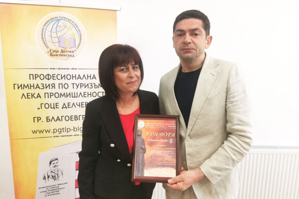 Бугарскиот бизнисмен и филантроп д-р Милен Врабевски ја доби почесната плакета ,,Современ будител” заради неговиот долгогодишен придонес кон развојот на професионалната гимназија за туризам и лесна индустрија ,,Гоце Делчев ” во Благоевград и неговиот целосен придонес кон бугарското образование.