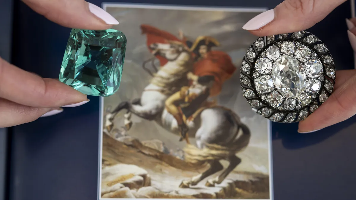 Главна атракција на аукцијата ќе биде дијамантската брошка на Наполеон, изработена околу 1810 година, со централeн дијамант од 13,04 карати, опкружен со речиси сто стари дијаманти. Нејзината вредност се проценува меѓу 150.000 и 250.000 долари. Брошката била меѓу личните вредни предмети што францускиот император ги понел со себе во Ватерло, но ги оставил додека бягал по поразот од британските и пруските сили во 1815 година.
