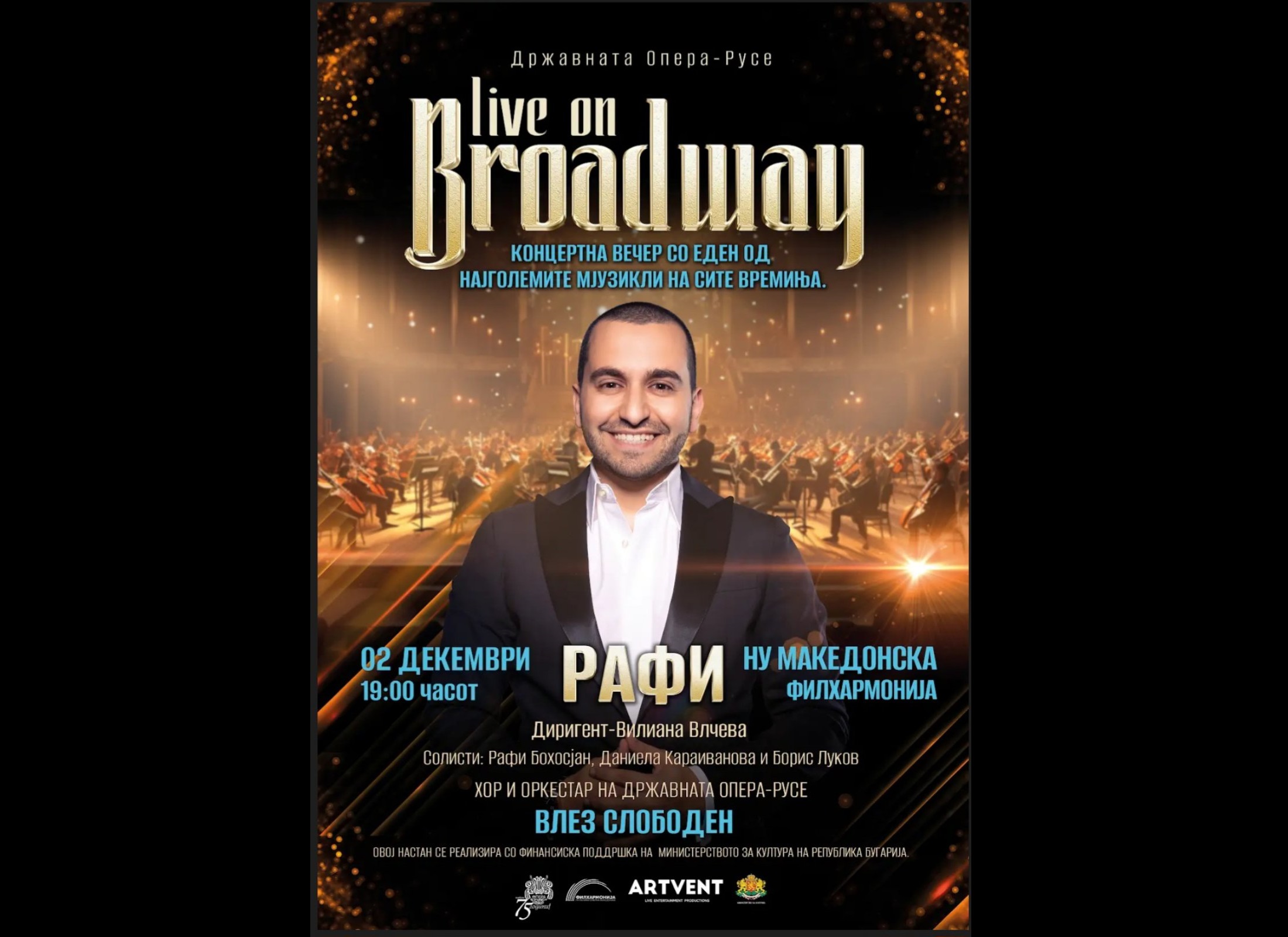 На сцената ќе се појави харизматичниот и талентиран изведувач Рафи Бохосјан а во програмата ќе се вклучат и познатите солисти на Операта во Русе сопранот Даниела Караиванова и тенорот Борис Луков. Тие ќе настапат со оркестарот и хорот на Државна опера Русе под диригентската палка на Вилиана В’лчева. Влезот е слободен.