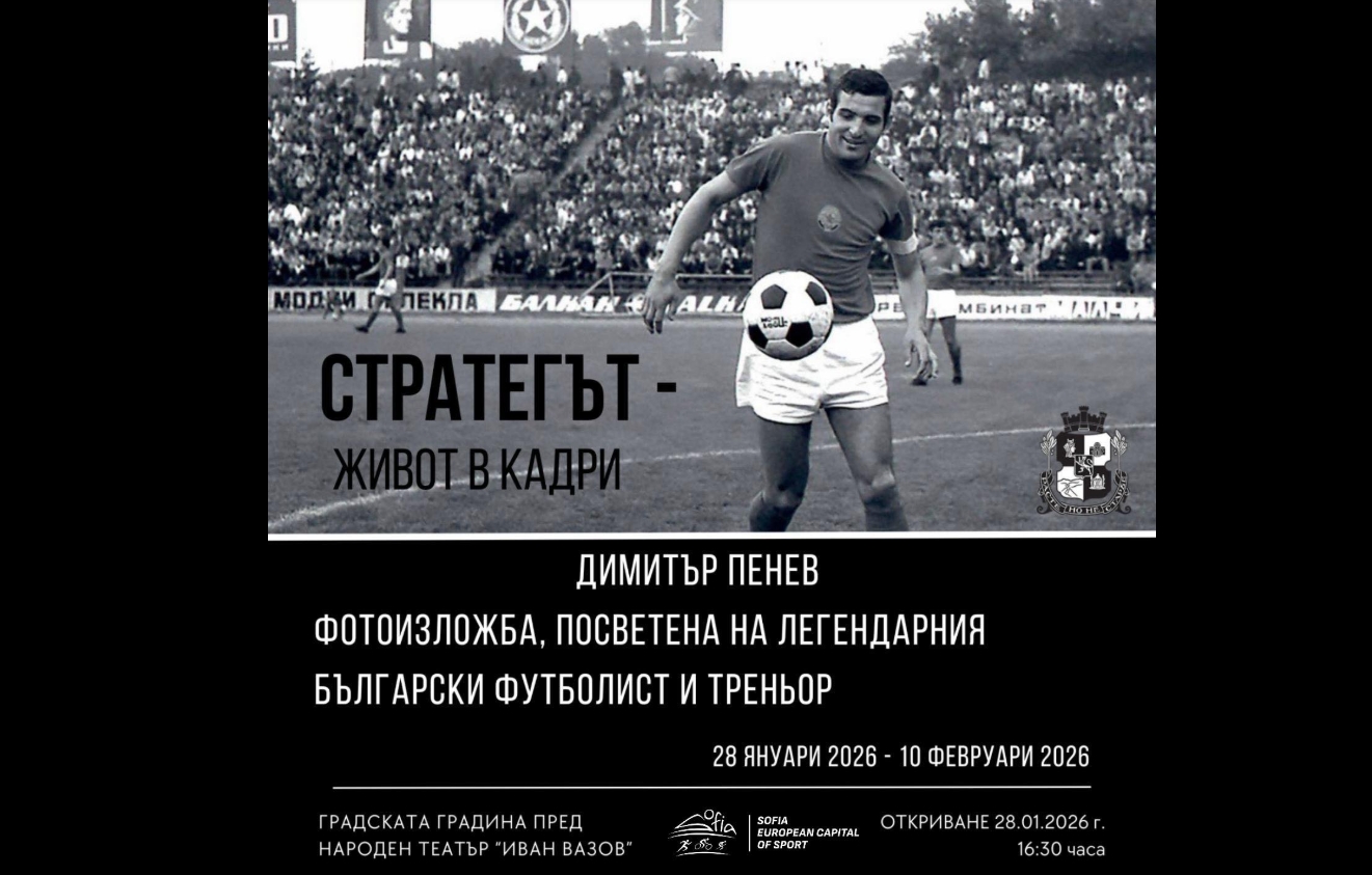 Утре, на 28 јануари, во Градската градина пред Народниот театар „Иван Вазов“ во Софија ќе биде отворена фотоизложба во чест на легендарниот Димитар Пенев. Отворањето е во 16:30 часот.