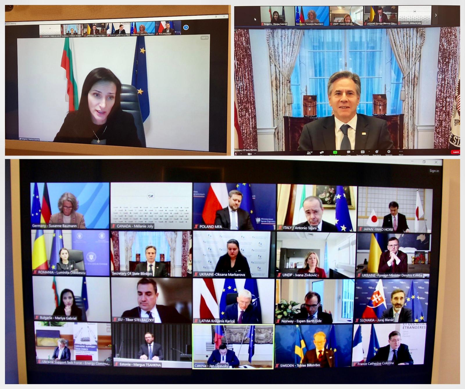 Вицепремиерката и министерка за надворешни работи на Бугарија Марија Габриел учествуваше на состанокот на министрите за надворешни работи во форматот Г-7+. Состанокот организиран од американскиот државен секретар Ентони Блинкен и министерката за надворешни работи на Јапонија Јоко Камикава – ротирачки претседавач со Г-7 во 2023 година, беше со главна тема поддршката на енергетскиот сектор на Украина, јавува бугарското министерство за надворешни работи.