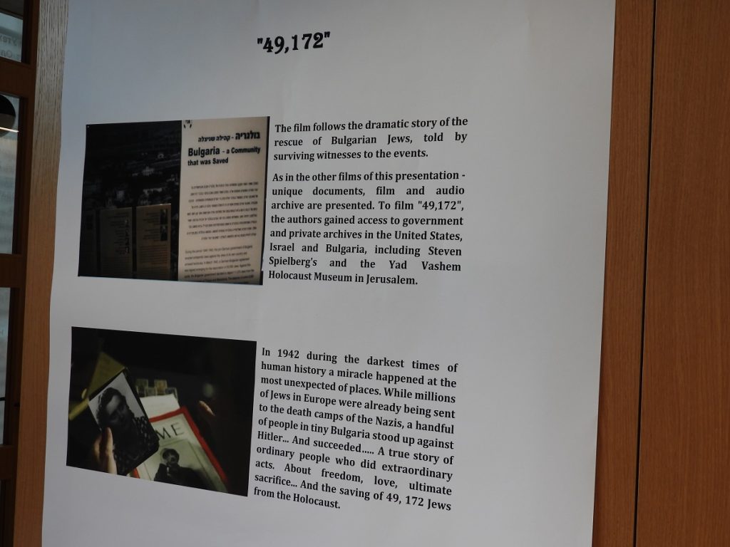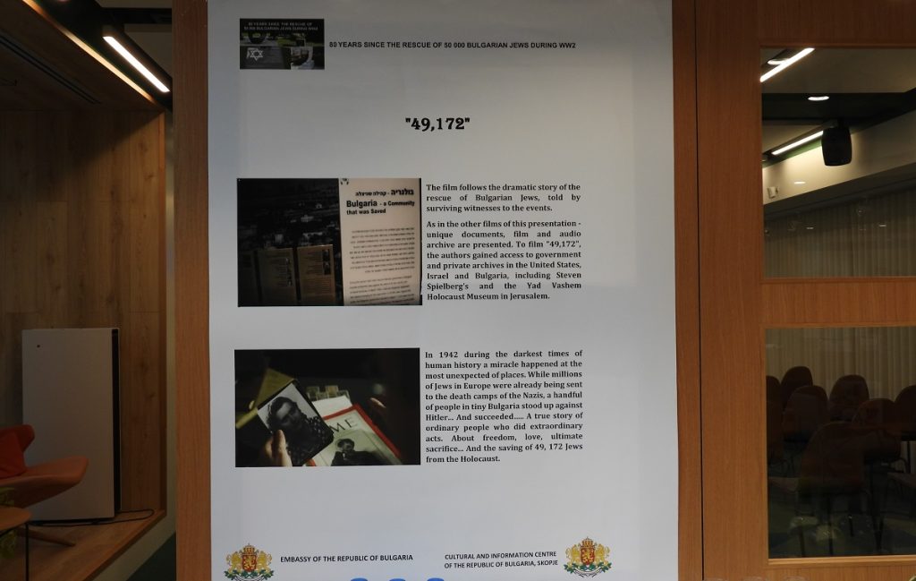 Филмот „49 172“ за спасувањето на бугарските Евреи денес се емитуваше во Europe House во Република Северна Македонија. Проекцијата беше во организација на Амбасадата на Бугарија во РСМ. Емитувањето на филмот е по повод 80-годишнината од спасувањето на околу 50.000 бугарски Евреи на кои им се заканувала депортација во нацистичка Германија за време на Втората светска војна.