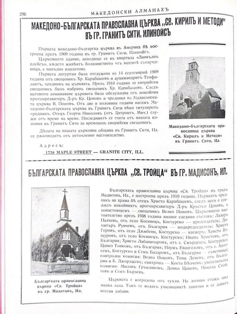 „Црквата „Св. Троица“ во Медисон е изградена во 1910 г. од македонски Бугари и денес е најстарата активна бугарска православна црква во Америка. Благодарение на самопожртвуваната активност на отец Иван и заложбите на локалната заедница, црквата е зачувана до ден-денес, со мисла за идните генерации.