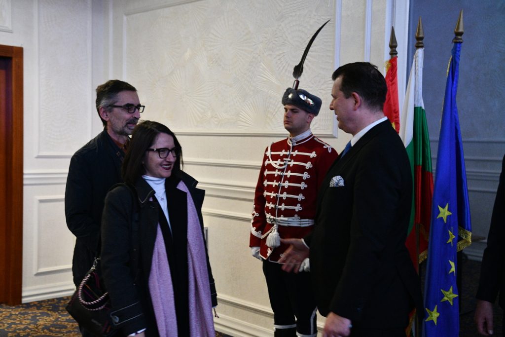 Амбасадорот на Бугарија, Желјазко Радуков, го започна своето обраќање кон присутните со кратка ретроспектива на процесот на целосната интеграција на земјата во ЕУ со влезот во еврозоната. Нешто, за што вети да им раскаже на присутните за време на минатогодишниот прием по повод бугарскиот национален празник.