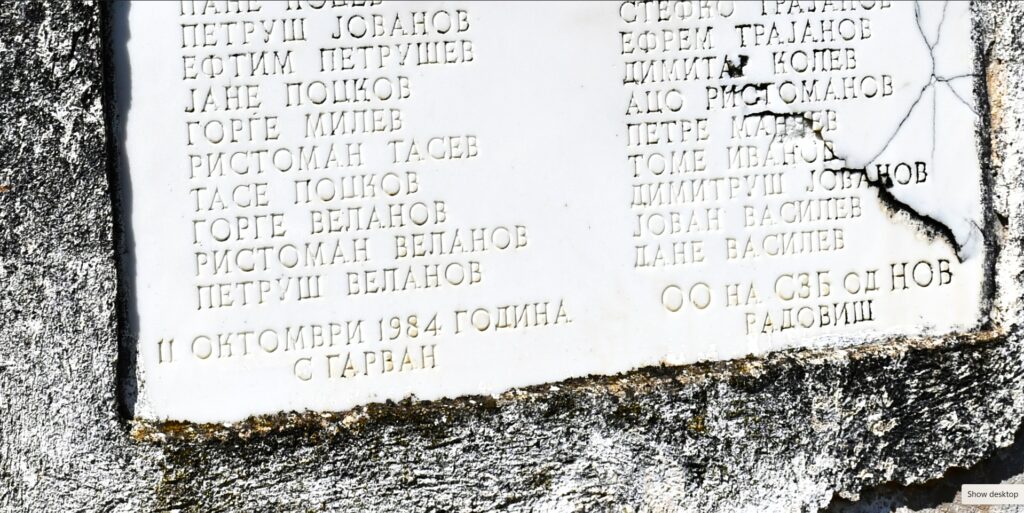 Прашуваме како да стигнеме до гробиштата. Од блиската куќа излегува еден човек на средни години. Љубезен и со широка насмевка, се труди да ни објасни каде се гробиштата. Го прашуваме што знае за споменикот. Ами, вели тој, тука се убиени некои од селово, не знам, ама “мај бугарѐто са ги убѝли“…било, вели, одамна, одмавнува со рака и не упатува кон гробиштата. Не, немаше тука никаков “говор на омраза“, немаше ништо непријателско. Тоа беше само констатација на еден човек кој си ја гледа работата, а петокраката на врвот на споменикот, каде тој пие вода од чешмата, а стоката му се напојува од убаво уреденото корито, го наведува да помисли она што е најлогично…бугарите ги убиле?! Тоа е резултатот од нашите “секогаш добри односи со бугарите“, ама ете сега “некои сакаат да внесат омраза меѓу двата народа“! Да беа бугарите да убиле толку луѓе на едно место и во еден ден, до сега на местото ќе имаше меморијален парк и споменик како “кеопсовата“ пирамида. Интригантна е годината на подигањето на споменикот, 1984 а повод е празникот 11 октомври.