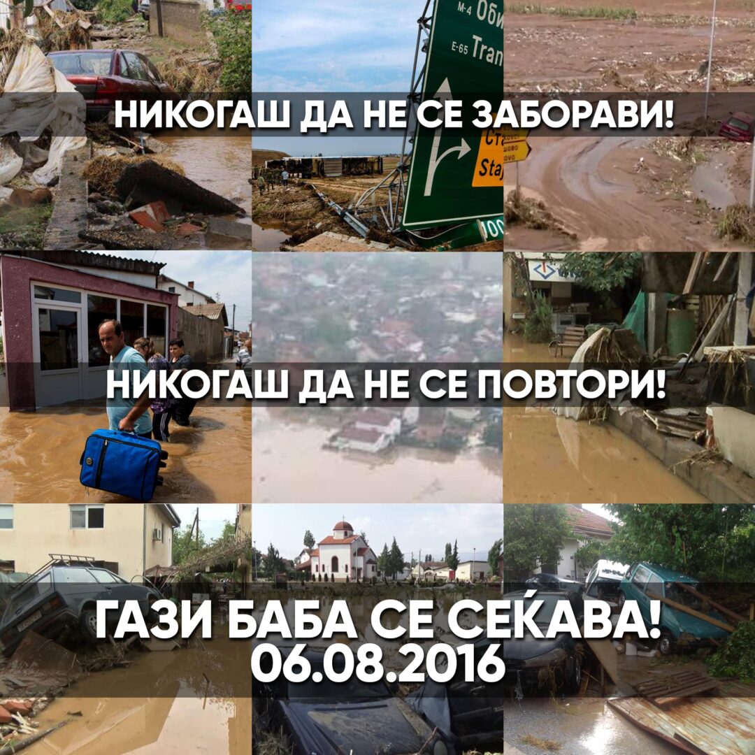 Градоначалникот на општина Гази Баба, Бобан Стефковски, во објава на својата официјална страница на Фејсбук, потсетува дека денес се навршуваат седум години од катастрофалната поплава која во 2016 година ја погоди општина Гази Баба.