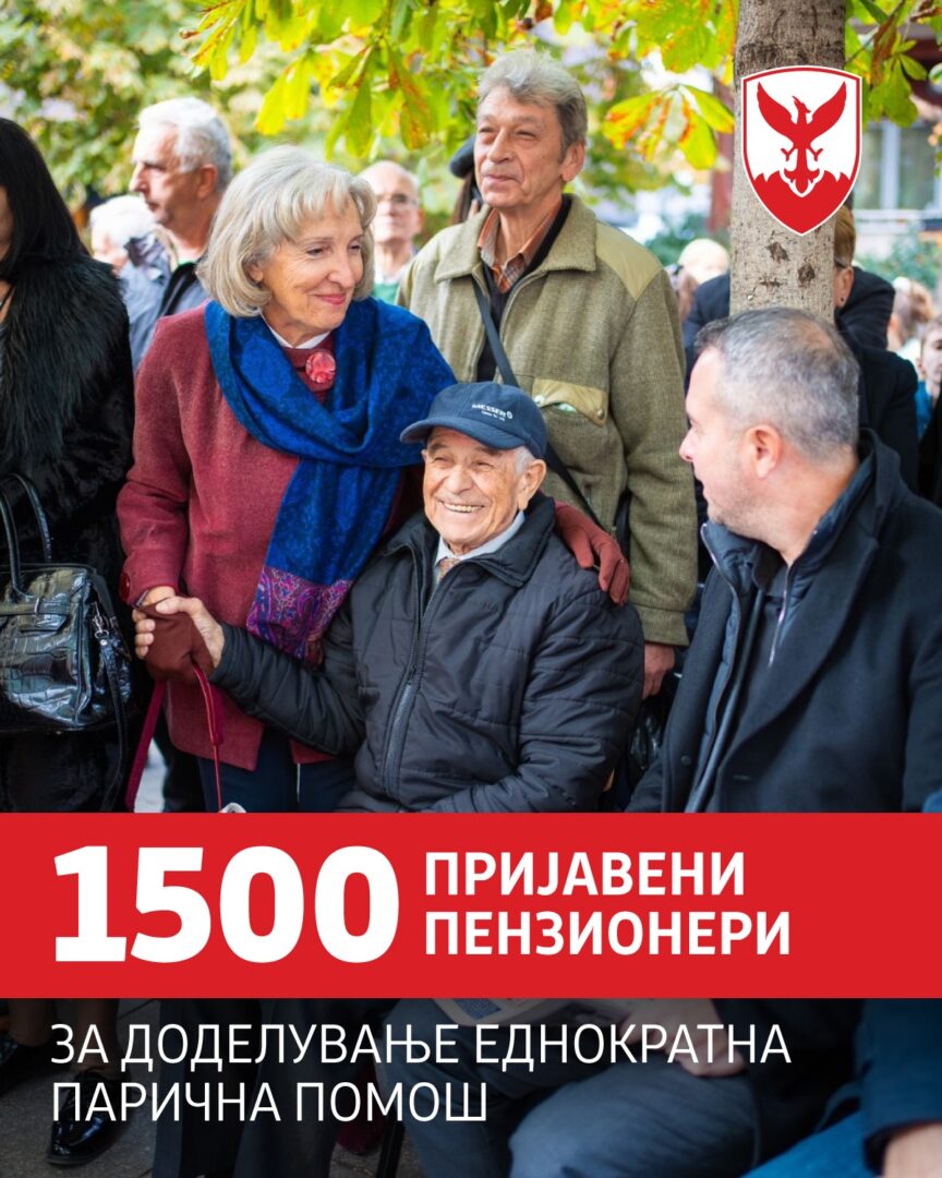 Општина Центар информира дека 1500 пензионери досега се имаат пријавено на јавниот повик за доделување еднократна парична помош во висина од 2.500 денари за пензионери со старосна, семејна, инвалидска или социјална пензија не повисока од 23.758,00 денари.