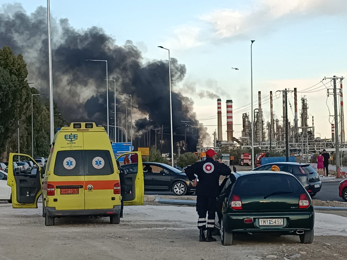 Пожар избувна во втората по големина нафтена рафинерија во Грција, а работниците беа евакуирани бидејќи црн чад се прошири на небото, соопштија властите и компанијата „Мотор Оил“.