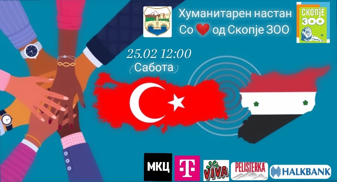 Оваа сабота со поддршка од Град Скопје во Зоолошката градина Скопје ќе се одржи хуманитарен настан за помош на настраданите семејства во земјотресот во Турција и Сирија.
