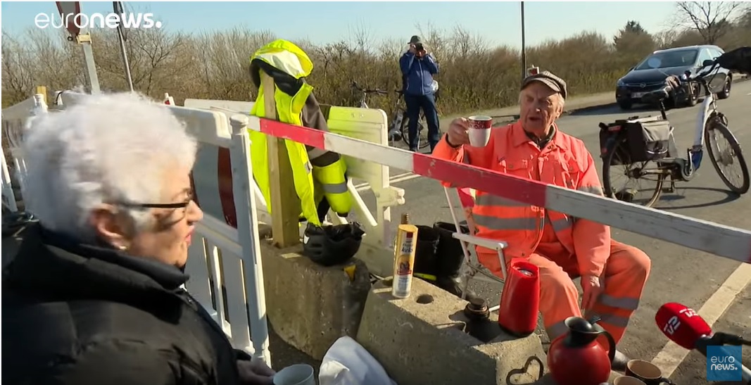 Секој ден 85-годишната Инга Расмусен и 89-годишниот Карстен Тухсен Хансен се сретнуваат на границата меѓу Данска и Германија кај градчето Авентофт, за да пијат кафе и шнапс.