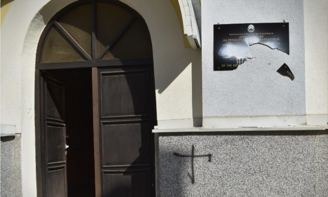Синоќа е искршена таблата на Подрачното одделение на Државниот архив во Струмица, која е неодамна поставена и е испишана на македонски, албански и англиски јазик, јавува Лидер.