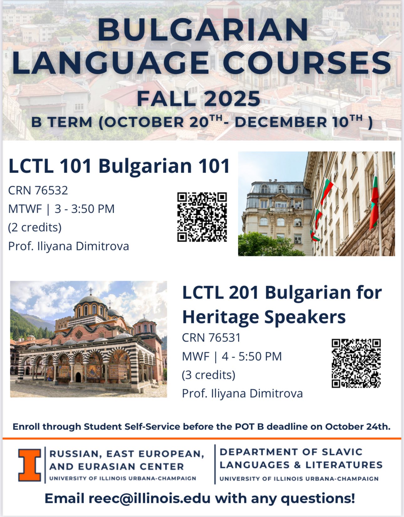 Во рамките на пилот иницијативата студентите ќе можат да изучуваат: Бугарски јазик за студенти со бугарско потекло (LCTL 201) и Вовед во бугарскиот јазик (LCTL 101). Во пролетниот семестар во 2026 година се очекува и курс по бугарска историја и култура.