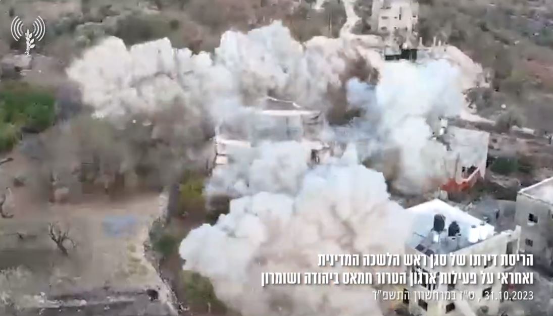 כוחות הביטחון הרסו הלילה את ביתו של צלאח ערורי, סגן ראש הלשכה המדינית והאחראי על פעילות ארגון הטרור חמאס ביהודה ושומרון.