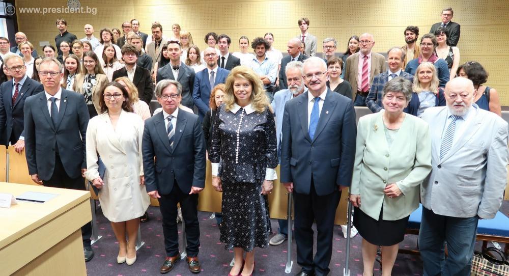 Потпретседателката ги запозна студентите со подемот на книжевноста, културата и духовноста во Првата бугарска држава, која станува епицентар на словенската источноправославна заедница. Првиот Златен век на Бугарија е следен од втор за време на Второто бугарско царство, кое неколку децении е најмоќната православна држава на Балканот. „Благодарение на христијанизацијата, писменоста и јазикот, Бугарија останува во сеќавањето на Европа дури и кога исчезнува со векови од политичката карта на континентот“, рече Јотова.