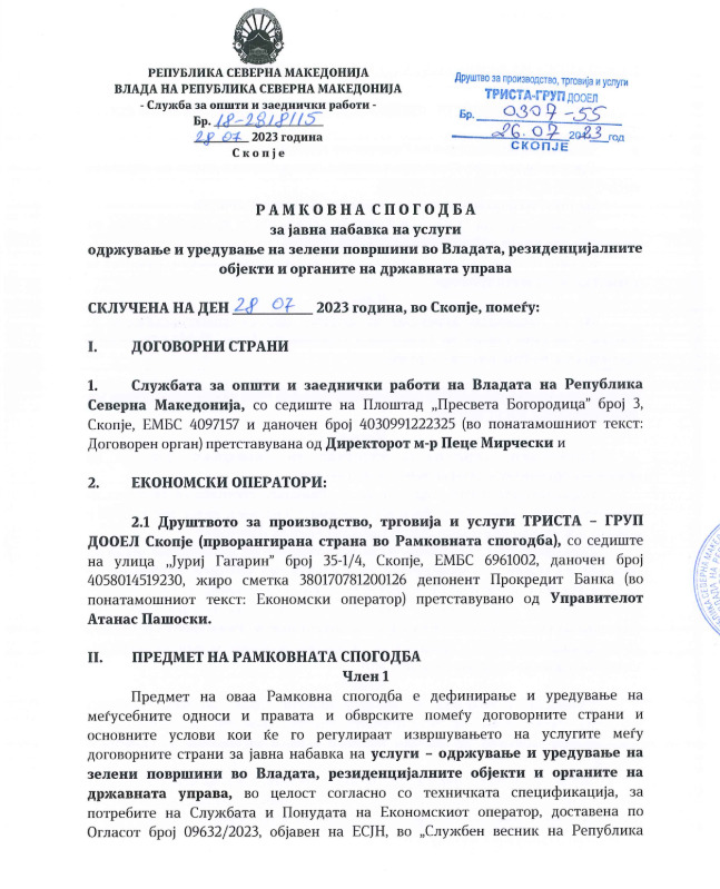 „Таков договор со Владата нашето претпријатие нема склучено. ЈП Паркови и зеленило е надлежно за одржување на зеленилото во парковите, булеварите, собирните и магистрални улици кои се под надлежност на Град Скопје, како и Парк шумите Водно, Гази баба, СРЦ Сарај и Матка.
