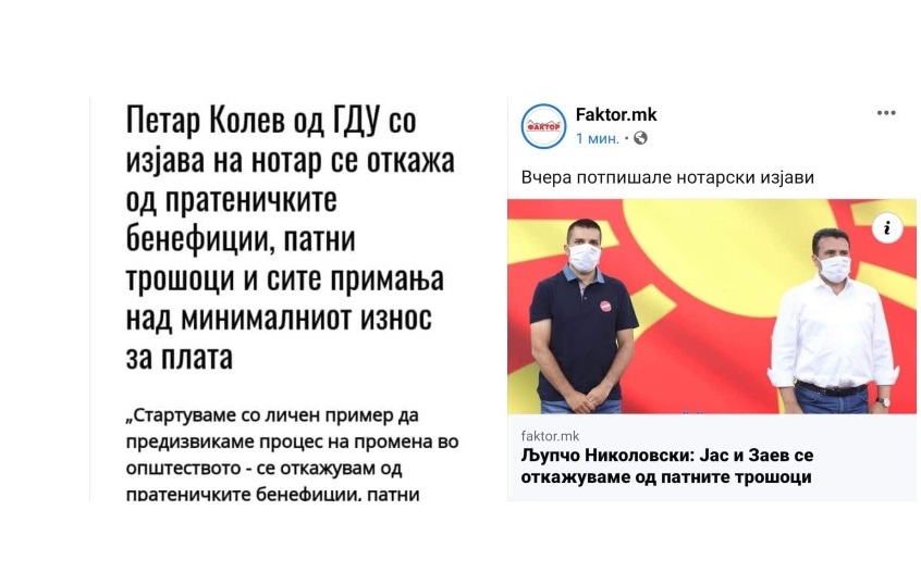 Откако Генералниот секретар на СДСМ Љупчо Николовски ја информираше јавноста дека тој и Зоран Заев потпишале нотарски изјави за откажување од патните трошоци, лидерот на ГДУ Петар Колев кој заедно со неговите колеги Борче Пачемски и Марјан Михов потпишаа такви изјави уште во предизборната кампања, ги повика и останатите 118 пратеници во македонскиот парламент да потполнат такви изјави а ако немаат примероци да им испрати.