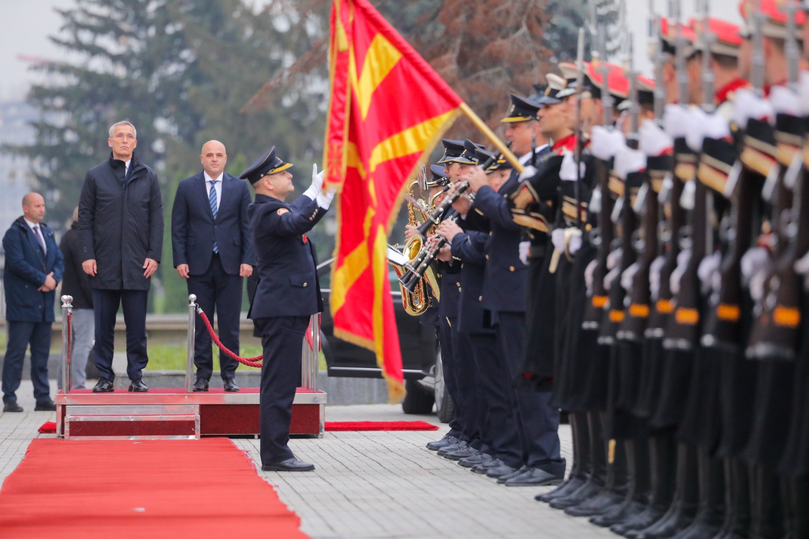 Премиерот Димитар Ковачевски, денеска, со највисоки почести на платото пред Владата го пречека генералниот секретар на НАТО, Јенс Столтенберг, кој е во официјална посета првпат откако нашата држава е членка на НАТО.