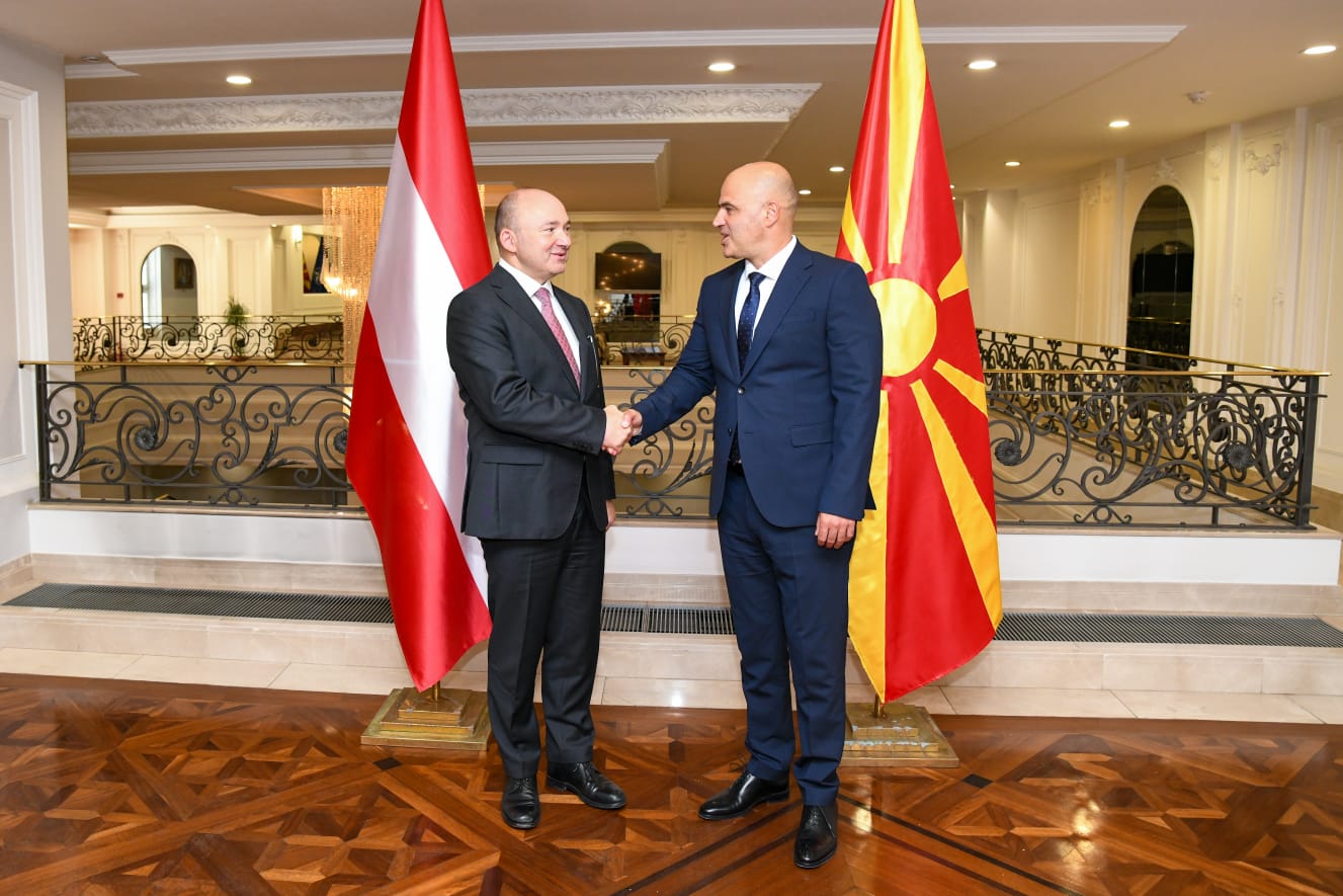 Претседателот на Владата на Република Северна Македонија, Димитар Ковачевски, се сретна со новиот амбасадор на Република Австрија во земјава, Мартин Памер.