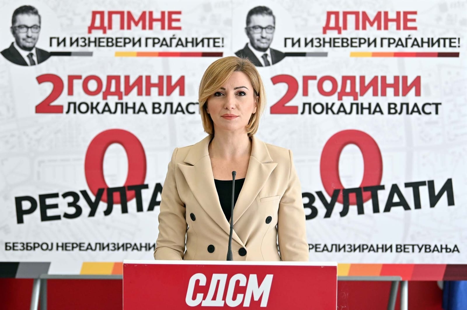 „Во Прилеп, ДПМНЕ за 300% го зголеми данокот на имот за граѓаните а прилепчани плаќаат повисоки сметки за 67%. Не се реализирани проектите од програмата на градоначалникот, ги нема ветените нови градинки, катни гаражи, кружен тек. Прилеп е во мрак и полн со ѓубре. Резултати нула! Во Битола е исто, не знаеш каде е полошо, нема проекти, нема резултати, а граѓаните плаќаат поголеми сметки. ДПМНЕ и Коњановски ги покачија сметките за данок на имот за 300%. Удрија по џебот на граѓаните и со поскап паркинг, со укинато слободно паркирање. Во Аеродром е дури и полошо, ниту едно изборно ветување не е реализирано, ниту еден капитален проекти, буквално ништо. Ги нема ветените нови градинки, нова гимназија, ниту „зелено“ училиште. Нема нови 100.000 m2 паркови и зеленило. Нема нови 3.000 паркинг места, кружни текови, велосипедски, пешачки и трим патеки. Веќе се потрошени над 30 милиони евра пари на граѓаните а не се реализира ништо. Во Штип идентично лошо, без никакви резултати а зголемени сметки за народот. ДПМНЕ и Иван Јорданов ги покачија сметките за штипјани за 110% а поскап е и паркингот“, вели Кузеска.