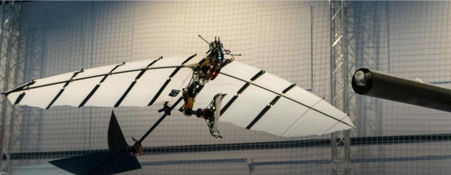 Досега, роботите кои можат да мавтаат со крилјата како птици не поседувале способност да слетаат. Нивниот „соработник“, конструиран од швајцарски научници, е првиот од ваков вид, способен самостојно да лета до хоризонтална греда и да се прилепува на неа со своите механички канџи.