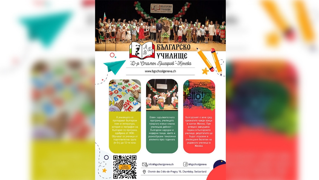 Бугарскиот јазик од оваа учебна година е меѓу признатите странски јазици во кантонот Женева, Швајцарија. Учениците кои успешно ќе ја завршат годината во Бугарското училиште „Д-р Стамен Григоров“ во Женева ќе ги имаат своите резултати официјално евидентирани во училишниот билтен на редовното училиште, информираат од тимот на ова образовно средиште преку социјалните мрежи, пренесува БНР.