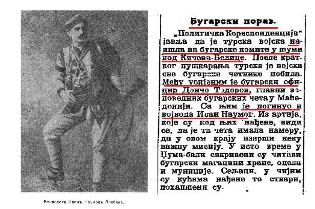 На 24-ти август 1907 г. паѓа во турска заседа близу до кичевското село Белица и јуначки загинува војводата на ВМОРО ИВАН НАУМОВ – АЉАБАКОТ.