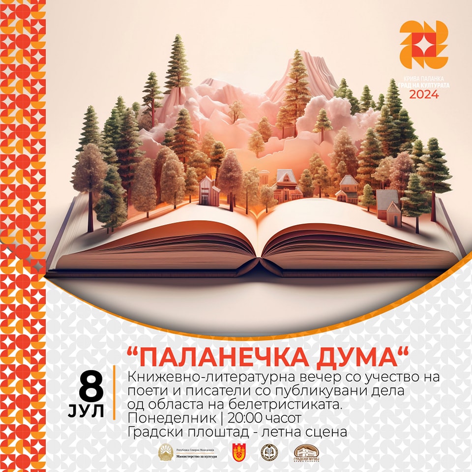 Вечерва, 8 јули, со почеток во 20 часот, летната сцена на Градскиот плоштад , ќе биде средиште на културниот настан „Паланечка дума“, кој ги обединува кривопаланечките книжевни таленти и автори.