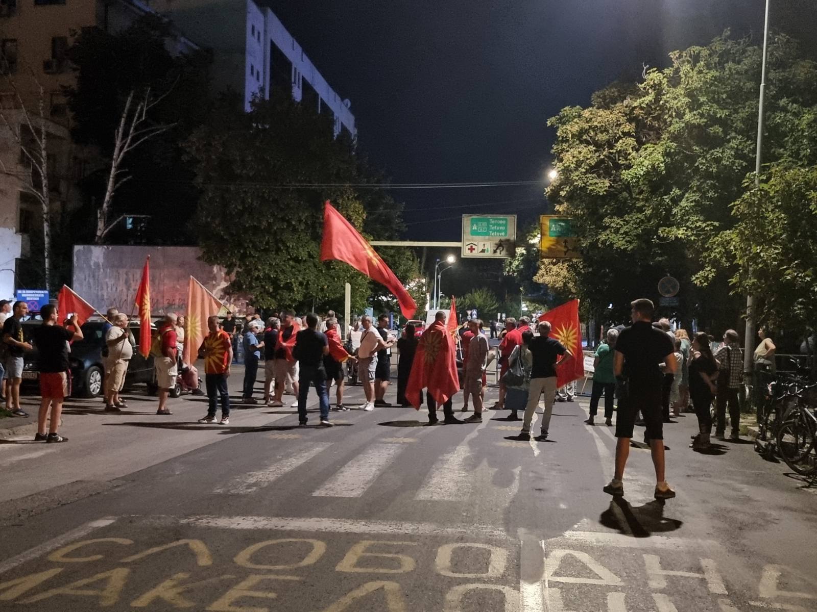 Демонстрантите извикуваа антибугарски пароли и бараат прекин на преговорите со Бугарија.