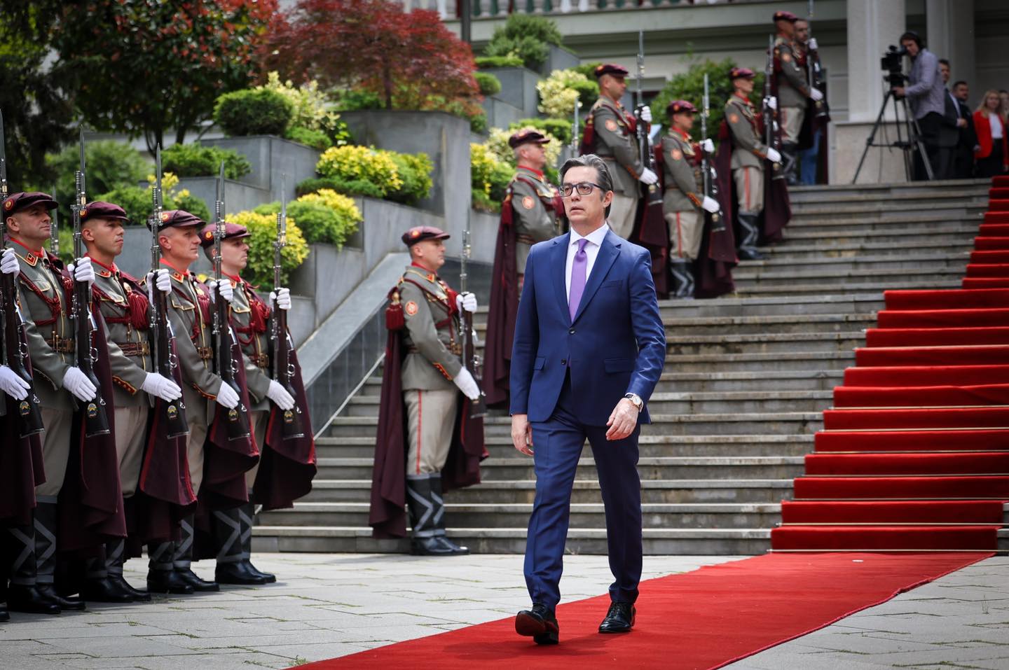 Претходно тој во Вила Водно ја пречека новата претседателка Гордана Силјановска-Давкова, пришто свечено и’ ја предаде функцијата, а и’ ja честита и победата.