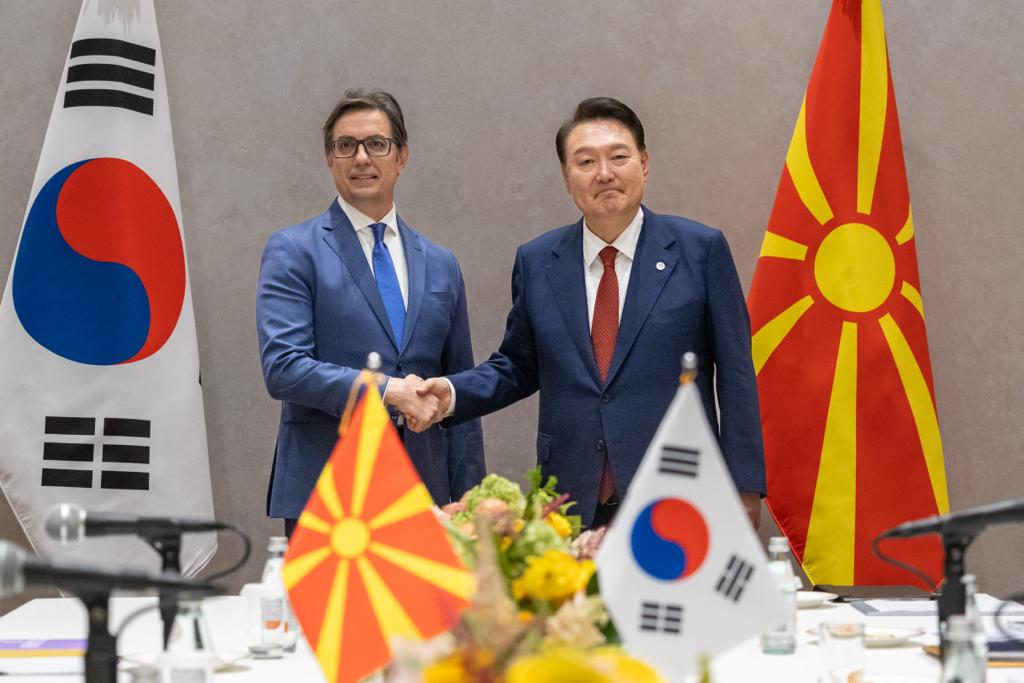 Претседателот Стево Пендаровски вчера во Њујорк оствари билатерална средба со претседателот на Република Кореја, Јун Сук-Јеол.