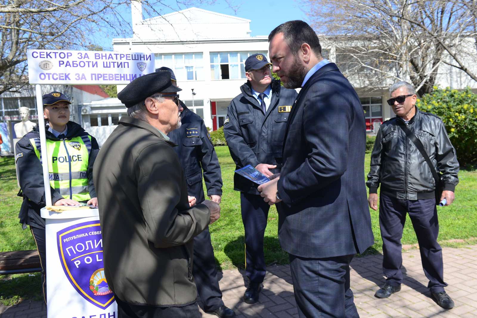 Во рамки на посетата на СВР Штип министерот Тошковски заедно со Отсекот за превенција, на случајни минувачи им поделија флаери со едукативна содржина кои имаат за цел да ја подигнат свеста кај граѓаните за важноста на соработката со полицијата.