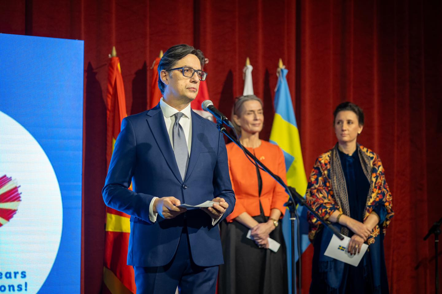 Претседателот Стево Пендаровски се обрати на приемот, што по повод 30-годишнината од воспоставувањето на дипломатските односи на Северна Македонија со Данска, Шведска, Норвешка и Финска се одржа вчеравечер во Скопје.