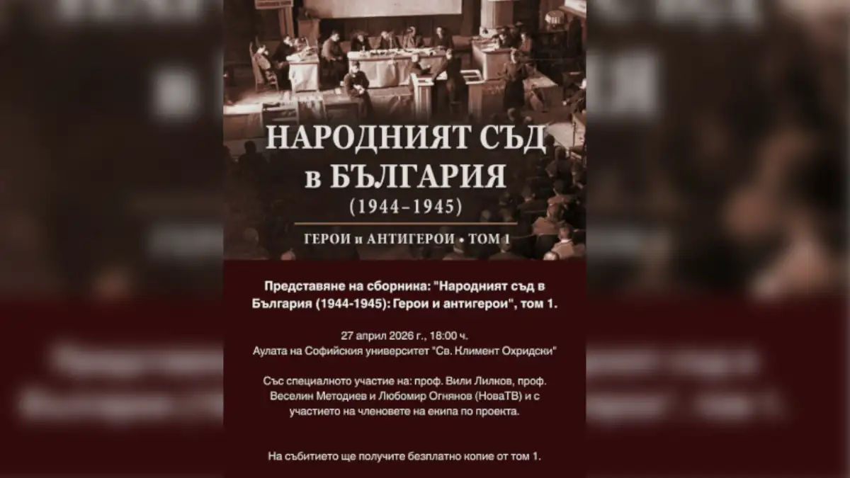 Научниот зборник „Народниот суд во Бугарија (1944–1945). Херои и антихерои. Том 1“ ќе биде претставен денес, 27 април, од 18:00 часот во Аулата на Софискиот универзитет „Св. Климент Охридски“, соопштија организаторите, пренесува БТА.
