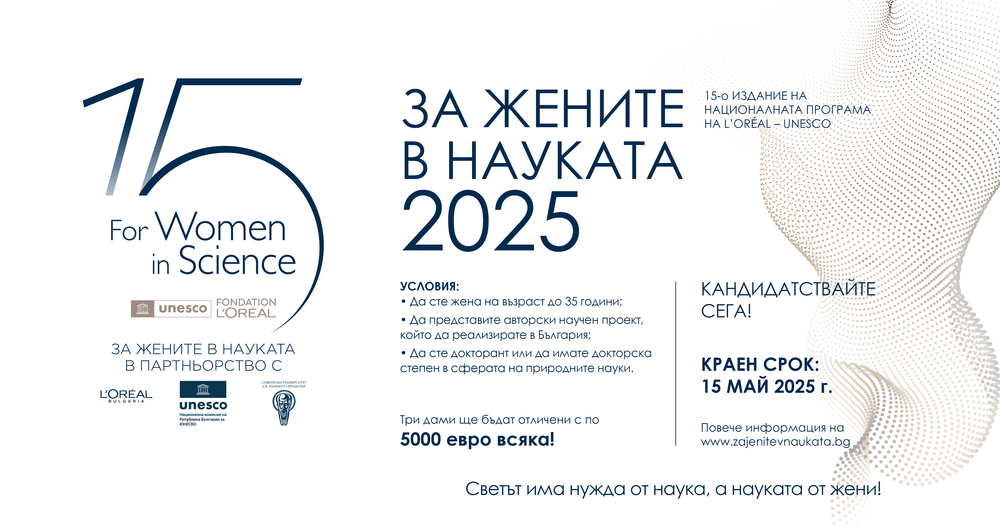 Оваа година на три извонредни бугарски истражувачки ќе им бидат доделени по 5.000 евра – признание за нивниот придонес во науката и поддршка за спроведување на нивните значајни проекти кои можат да го променат светот. Програмата не само што го поттикнува нивниот професионален развој, туку и посветува заслужено внимание на достигнувањата на жените во науката во Бугарија, инспирирајќи ја следната генерација девојки да продолжат со научни кариери.
