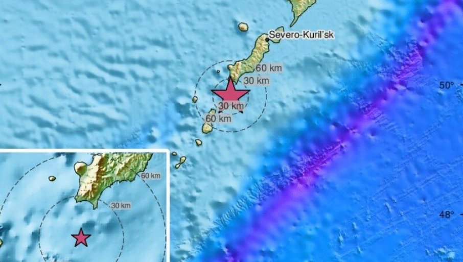 Одделот на руското Министерство за вонредни ситуации во областа Сахалин соопшти дека земјотресот е регистриран во Тихиот Океан во 3 часот и 22 минути, на 150 километри јужно од Северо-Курилск и дека потреси со јачина од два степени биле почувствувани во тој град, јави ТАСС.