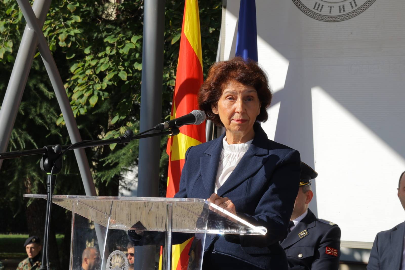 „Доказ за капацитетот и квалитетот на Воената академија се и студиите за управување со кризи и заштита и спасување. Среќна сум што, покрај на питомците, денес имам можност да им се обратам и на бруцошите – студенти на прв циклус студии за управување со кризи и заштита и спасување. Станува збор за неопходен кадар и за клучен човечки ресурс во зајакнувањето на институциите, надлежни за справување со кризи и заштита и спасување“, порача претседателката во своето обраќање.