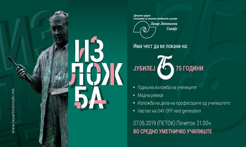 Со годишна изложба на учениците и дела од професорите, модна ревија и настап на групата Day off next generation, синоќа Средното уметничко училиште „Лазар Личеноски“ одбележа 75 години од своето постоење.