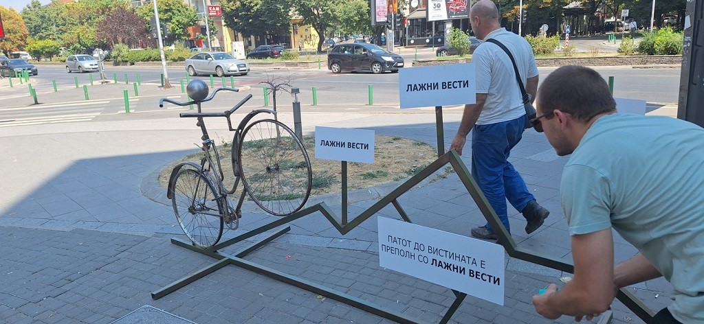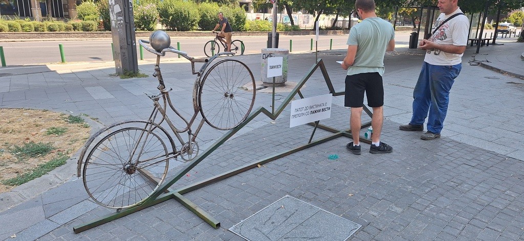 Со велосипед со два гидана скулпторот Маневски во борба против лажните вести
