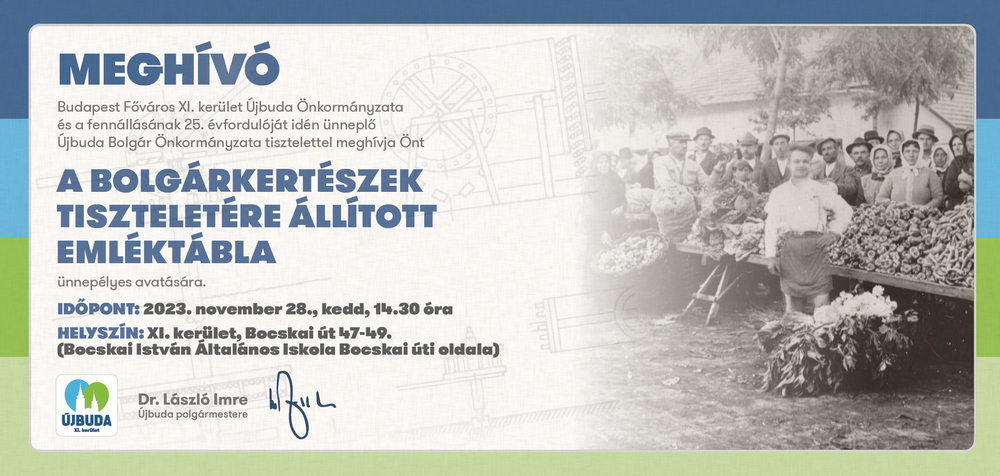 Отворање и осветување на спомен плоча во чест на бугарските градинари кои живееле и работеле на територијата на 11-ти реон во Будимпешта ќе се одржи на 28 ноември. Ова го објави бугарската републиканска самоуправа во главниот град на Унгарија на својата Фејсбук страница, пренесува БТА.