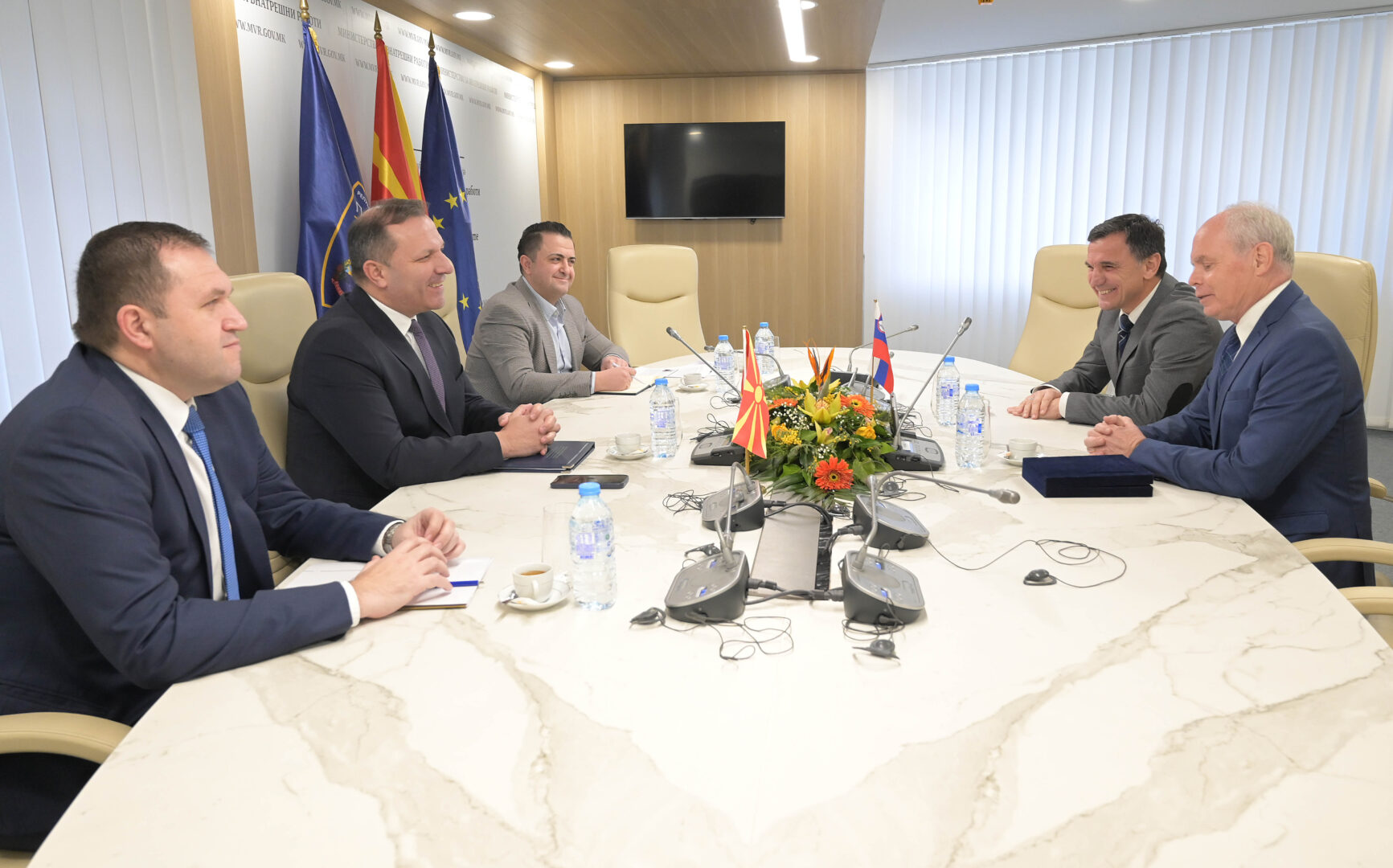 На средбата Спасовски му се заблагодари на амбасадорот Предан за поддршката од страна на Република Словенија во процесите за започнување на преговори со ЕУ и одличната соработка на Амбасадата на Република Словенија во Република Северна Македонија со Министерството за внатрешни работи, изразувајќи уверување дека истата ќе продолжи да се развива во континуитет и со новоименуваниот амбасадор.