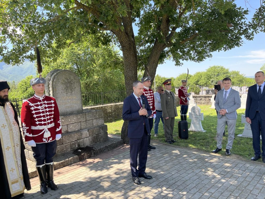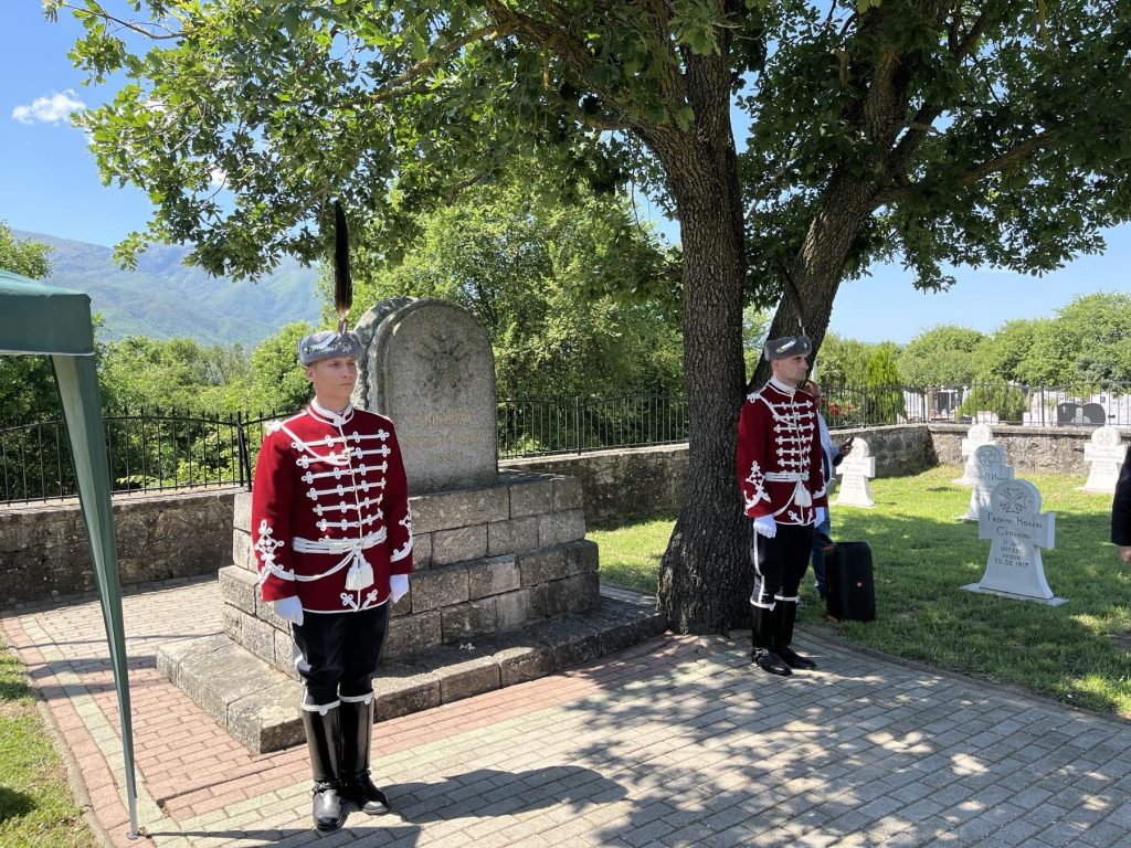 „Тука сме да им оддадеме почит на паднатите за Бугарија на територијата на денешна РСМ од Беласица до Дојран, од Битола до Охрид и Мокра Планина. Овие гробишта се пример како треба да изгледаат обновените гробишта на територијата на Северна Македонија“, рече амбасадорот Ангелов и додаде дека и денеска бугарските војници во мисиите во Босна и Херцеговина и Косово достојно ја претставуваат Бугарија.