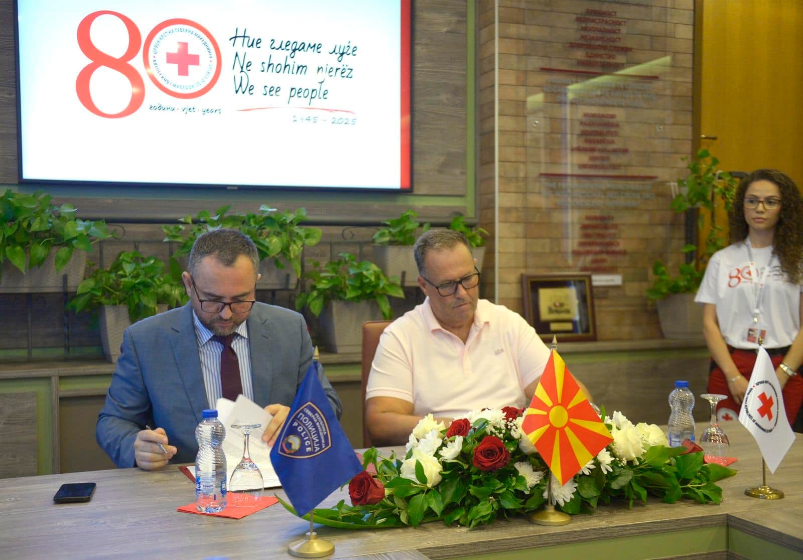 Министерот за внатрешни работи Панче Тошковски и генералниот секретар на Црвениот крст на Македонија Саит Саити денеска потпишаа меморандум за соработка помеѓу МВР и Црвениот крст.
