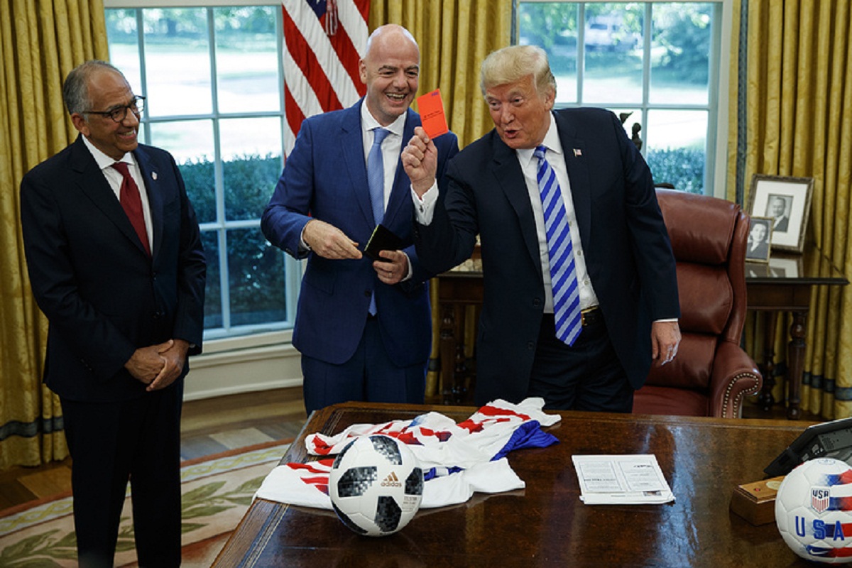 На видео снимката од средбата која се емитува на локалните ТВ канали, Инфантино му ги покажува на Трамп жолтиот и црвениот фудбалски картон, објаснувајќи дека тие се користат за да се дисквалификуваат играчи. Тогаш американскиот претседател го земал „црвениот картон“ и го покажал кон медиумите.