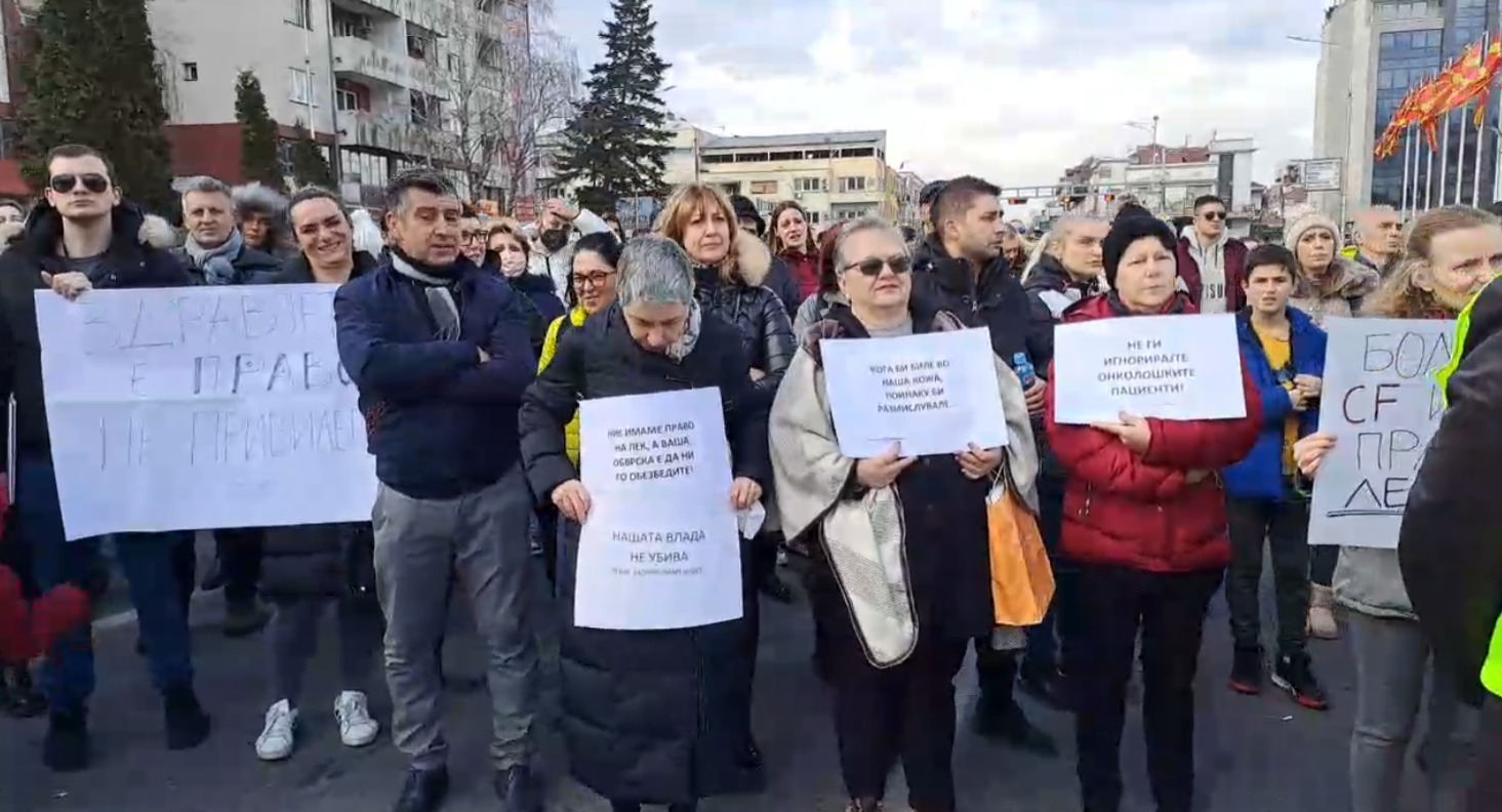 Со скандирање „Сакаме лек, не комодитет “ и „Трикафта за сите“ пациентите со цистична фиброза и нивните семејства денес напладне пред Влада побараа власта да побрза со одлуките и лек да обезбеди за сите болни. Дел од нив преку транспаренти „Сакаме Македонија да се гордее со нас, само дајте ни шанса“, „Бидете ни сојузници во животот“ и ред други, членовите на Асоцијацијата за цистична фиброза порачаа дека нема повеќе да молчат и да веруваат на ветувања.