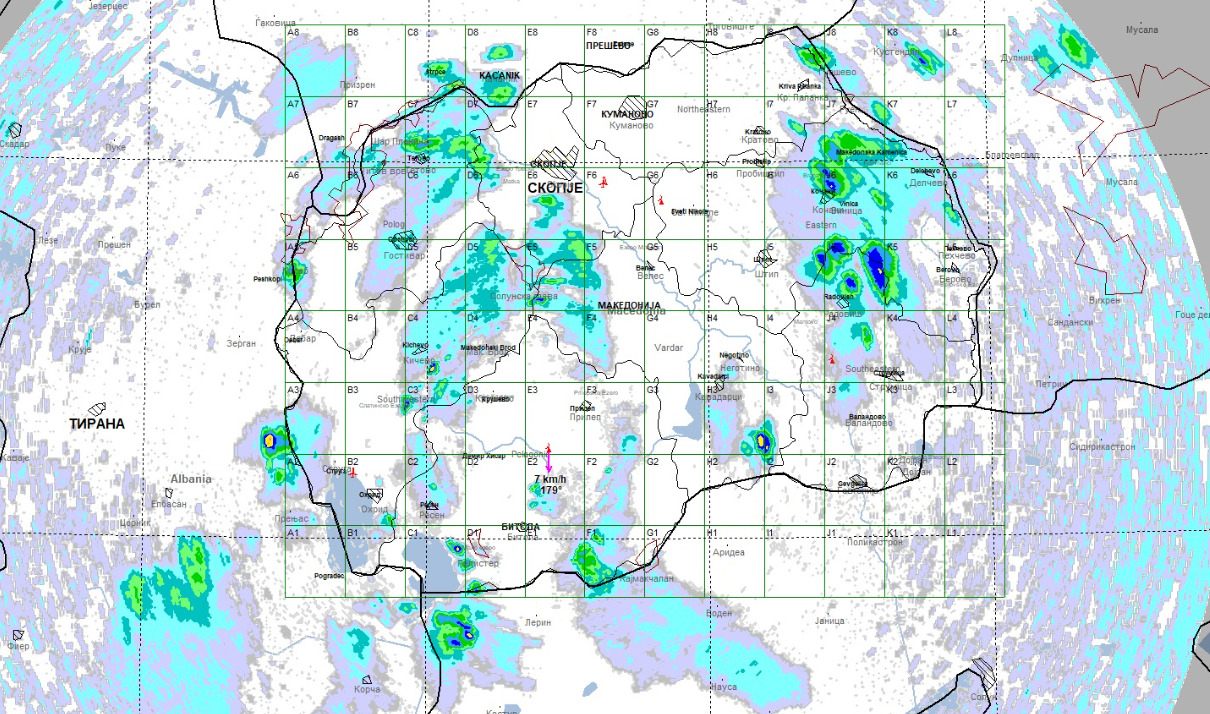 Дадените вредности за количината врнежи се измерени на дождомерните места на УХМР.