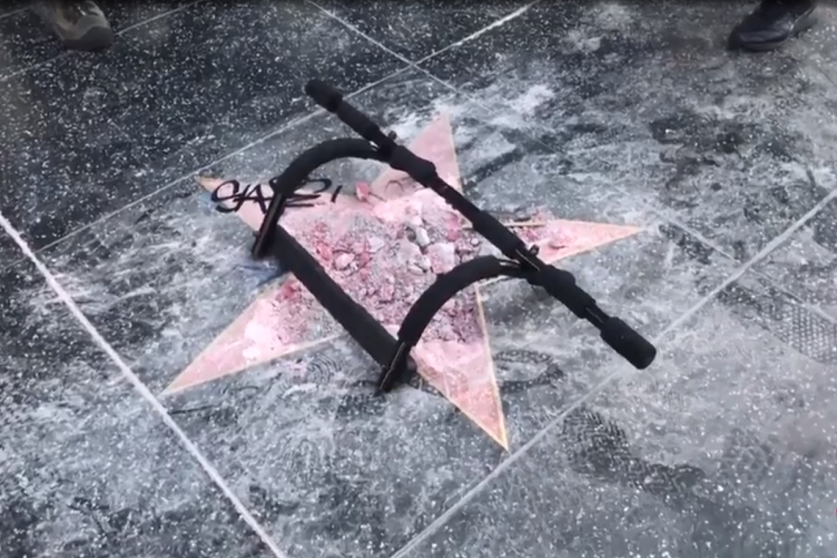 Осомничениот е уапсен откако ја уништи ѕвездата на американскиот прретседател Донал Трамп и тоа со помош на казма.